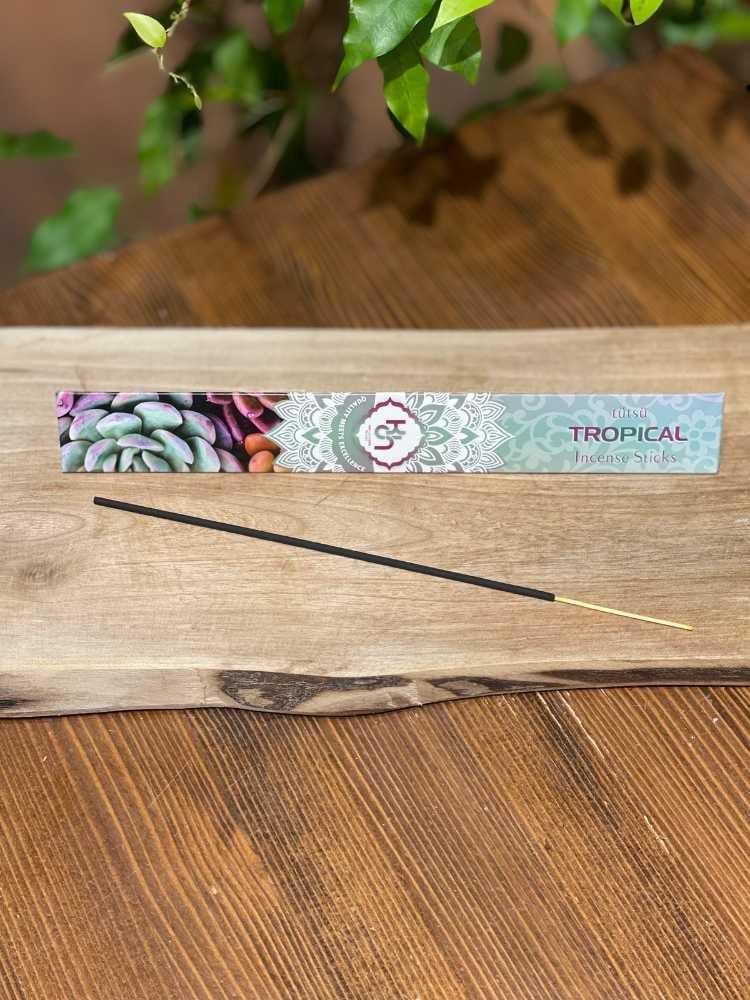 Tropikal çubuk tütsü, tropikal bölgelerde yetişen bitkilerin veya aromatik maddelerin özlerinden yapılan tütsü çeşididir. Bu tütsüler, tatlı ve egzotik kokularıyla bilinirler ve sıkça meditasyon, yoga, rahatlama ve spiritüel uygulamalar sırasında kullanılırlar. Tropikal çubuk tütsüler, aroma terapisinde de kullanılabilecek doğal ve hoş koku yayıcılarıdır.