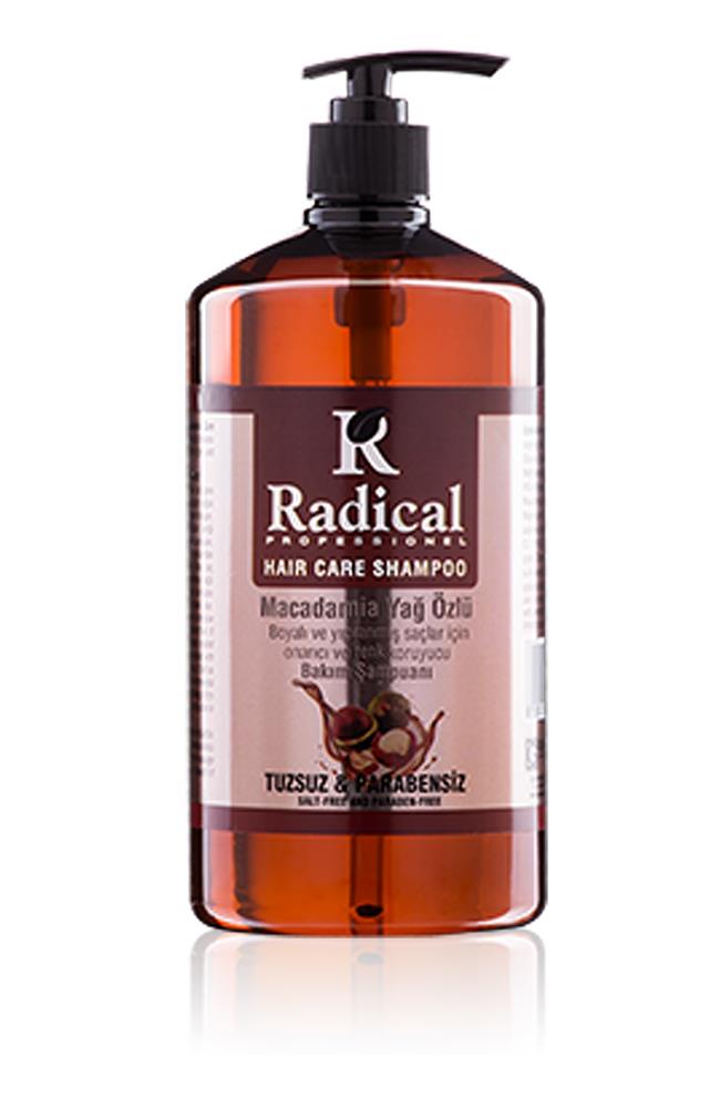 Radical Kozmetik Macadamia Yağ Özlü Şampuan, kuru ısıl işlem görmüş, boya ve açıcı gibi işlemlere tabi tutulmuş saçların yoğun beslenmesi ve onarılmasında etkilidir.
