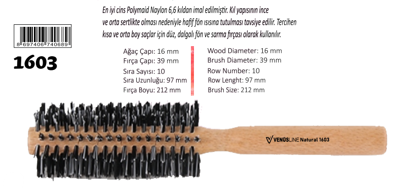 VENUSLINE NATURAL SAÇ FIRÇASI 1603