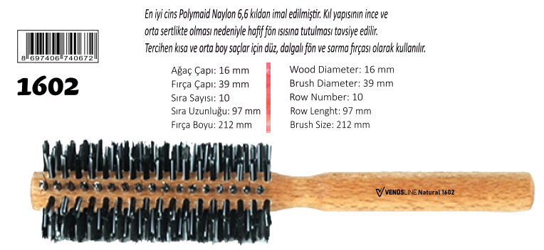 VENUSLINE  NATURE SAÇ FIRÇASI 1602