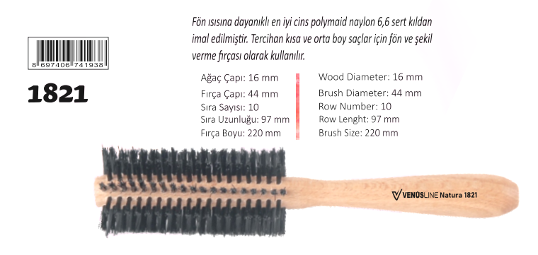 *Tercihen kısa ve orta boy saçlar için fön ve şekil verme fırçası olarak kullanılır.